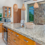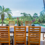 The upper level primary bedroom suite includes an office, walk-in closet, expansive terrace, golf and ocean views. A breezeway connects to the upper level guest suite. A second primary suite and second guest suite are on the main level. A guest casita with kitchenette, bedroom, bath and lots of closet/storage is ideal for staff or can be used as a full 5th Bedroom with additional privacy.