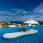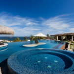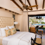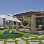 Casa de Karma’s outdoor living space is an adult’s playground. Boasting great ocean views, the Olympic size swimming pool has multiple beach entrances, an island for sunbathing and a large swim up bar to keep the cocktails flowing throughout the day. At sunset, it is best to wind down and relax at the wine and cheese area overlooking the bocce ball court and best sunsets in Cabo. Come night fall, you can curl up and keep warm at one of the three large fire pits/places scattered throughout the backyard.