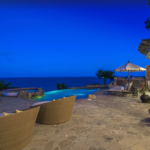 Perched on a cliff with steps leading to a semi-private white sandy beach, this 6 bedroom vill offers a great space for leisure and relaxation.