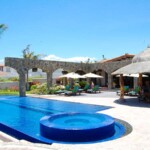 The resort style outdoor living at Villa Estero also includes a palapa shade covering the large outdoor grilling and dining area. An infinity-style Jacuzzi seemingly floats within the pool distinguished by its six big bubbling jets.