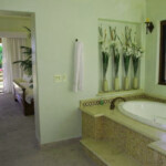 Lounging about is pretty easy inside too, with the home’s high-ceilinged comfort. Two of the four suites have sharp ocean views, and all have private baths.