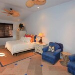 Definitively luxurious, this seaside oasis is soaked in a cheery palette of bright blues and creamy whites that blissfully echo its spectacular seaside setting. Villa 482 offers many unique features but the outdoor space is the real show-stopper with a swim-up bar, shaded hammock, and natural rock features surrounding the infinity edged pool overlooking the pristine semi-private beach. Wake up to hear the waves lap on the shore from your bedroom veranda and then step right onto the beach from your private pool patio.